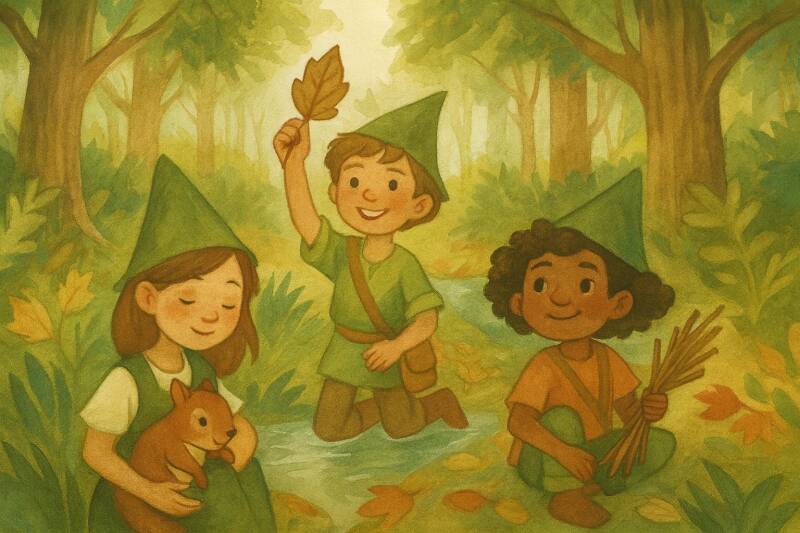 Les enfants sont amenés à utiliser divers outils (scies, vrilles, sécateurs, chignoles, couteaux), à grimper aux arbres, à marcher sur des rondins, à se suspendre sur des cordes, à marcher en équilibre sur des cordes, à se balancer sur des hamacs, à jouer près de cours d'eau, à marcher pieds nus, à dévaler des buttes de boue, à sauter dans des flaques ou à faire du feu...